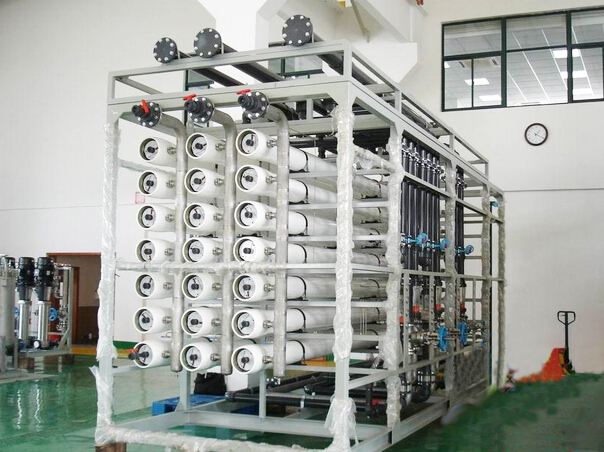 设备简介:100T/H 海水淡化系统。 行业用途:海水淡化生活饮用 产水水质:小于50μs/cm 设备流程:原水→多介质过滤器→活性炭过滤器→精密过滤器→中间水箱→反渗透设备→纯水储水箱→纯水泵→后置保安过滤器→用水点