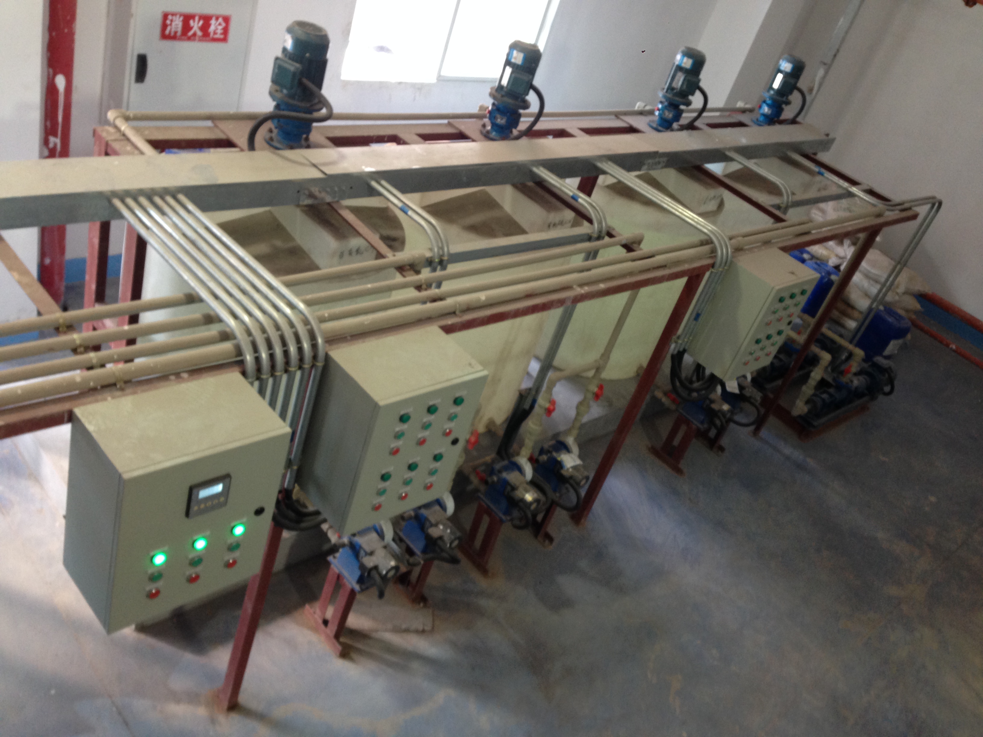 在絮凝箱中,加助凝剂(化学名聚丙烯酰胺,商品名PAM)的配合使用,可使已结晶析出的无机盐、重金属络合物及SS的细小矾花积聚成为较大颗粒,以便废水进入澄清器后更快的沉降。