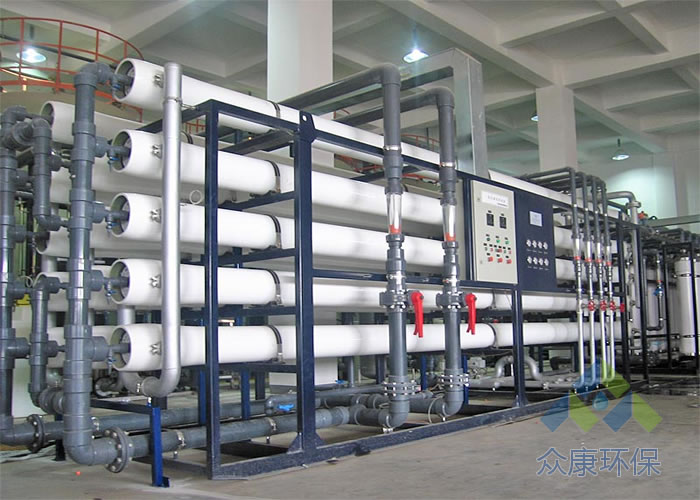 设备流程:原水→多介质过滤器→活性炭过滤器→精密过滤器→中间水箱→一级反渗透设备→二级反渗透设备→纯水储水箱 →